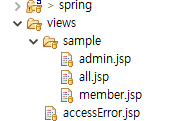 - member/member 계정으로 sample/admin 에 접근했을 때 springsecurity/accessError 로 강제 이동됨
