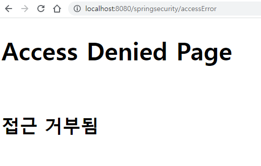 - /accessError 라는 URI로 접근제한시 보이는 화면 처리